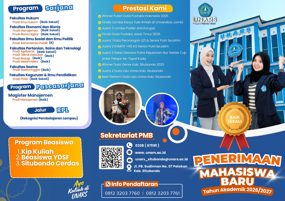 Universitas Abdurachman Saleh Situbondo (UNARS) terus menunjukkan perkembangan positif melalui peningkatan mutu akademik, capaian prestasi mahasiswa, penguatan kerja sama nasional dan internasional, serta komitmen dalam pelaksanaan Tri Dharma Perguruan Tinggi.