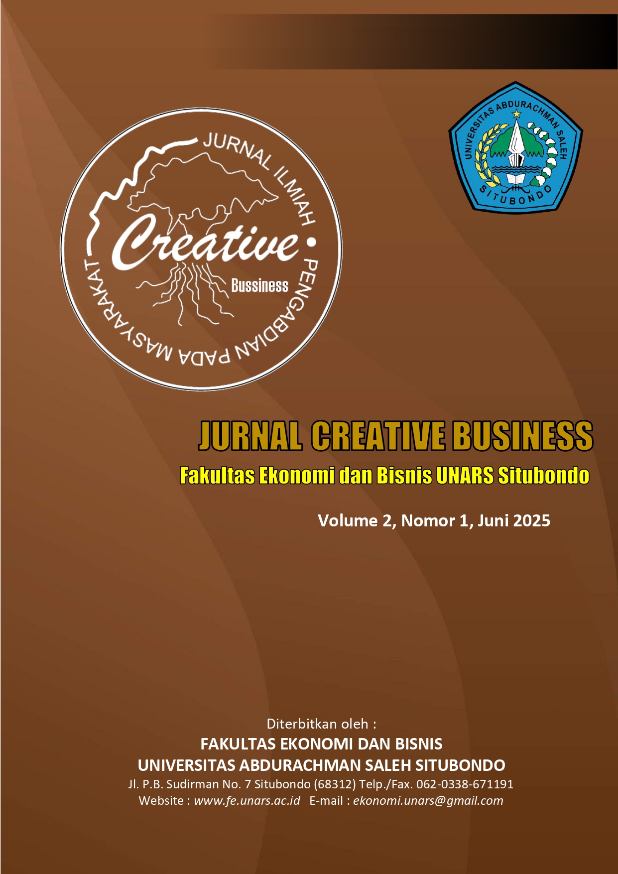 Jurnal Pengabdian Creative Business Volume 2 Nomor 2 bulan Desember 2025 merupakan media publikasi artikel ilmiah kegiatan pengabdian kepada masyatakat. Diterbitkan oleh Fakultas Ekonomi dan Bisnis Universitas Abdurachman Saleh Situbondo. Lingkup publikasi artikel pengabdian meliputi manajemen UMKM, Bisnis Digital, Financial Technology, Sumberdaya Manusia, pemberdayaan ekonomi pesisir dan inovasi ekonomi digital. Artikel diterbitkan setiap tahun dengan volume terbitan dua kali dalam satu tahun, masing-masing nomor diterbitkan sebanyak 6 artikel. Diterbitkan pertama pada tahun 2024 pada bulan Juni Tahun 2024.