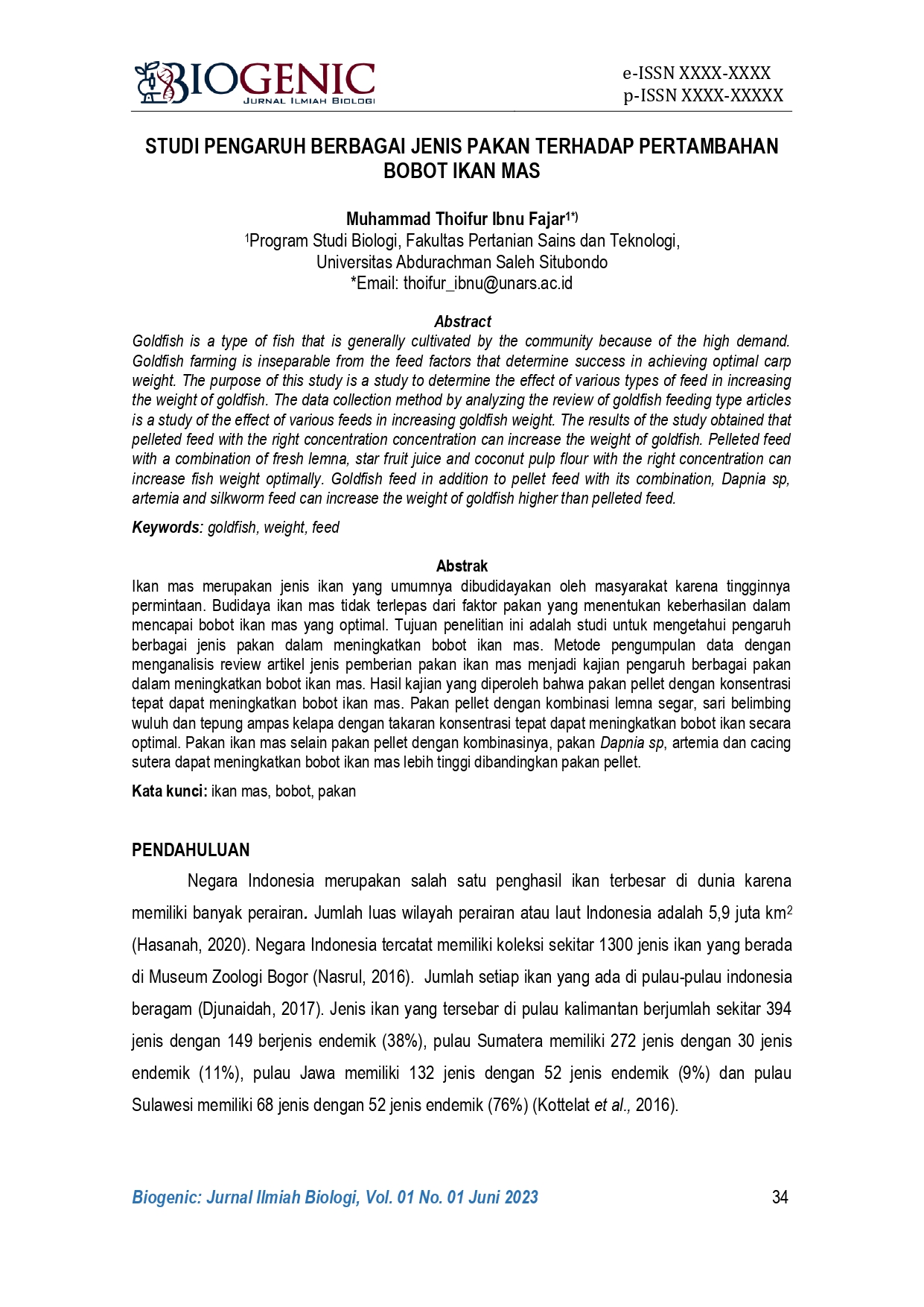 Kata kunci: ikan mas, bobot, pakan